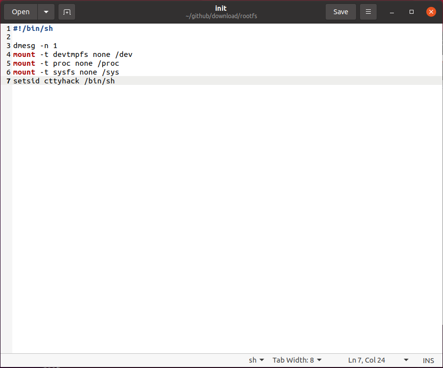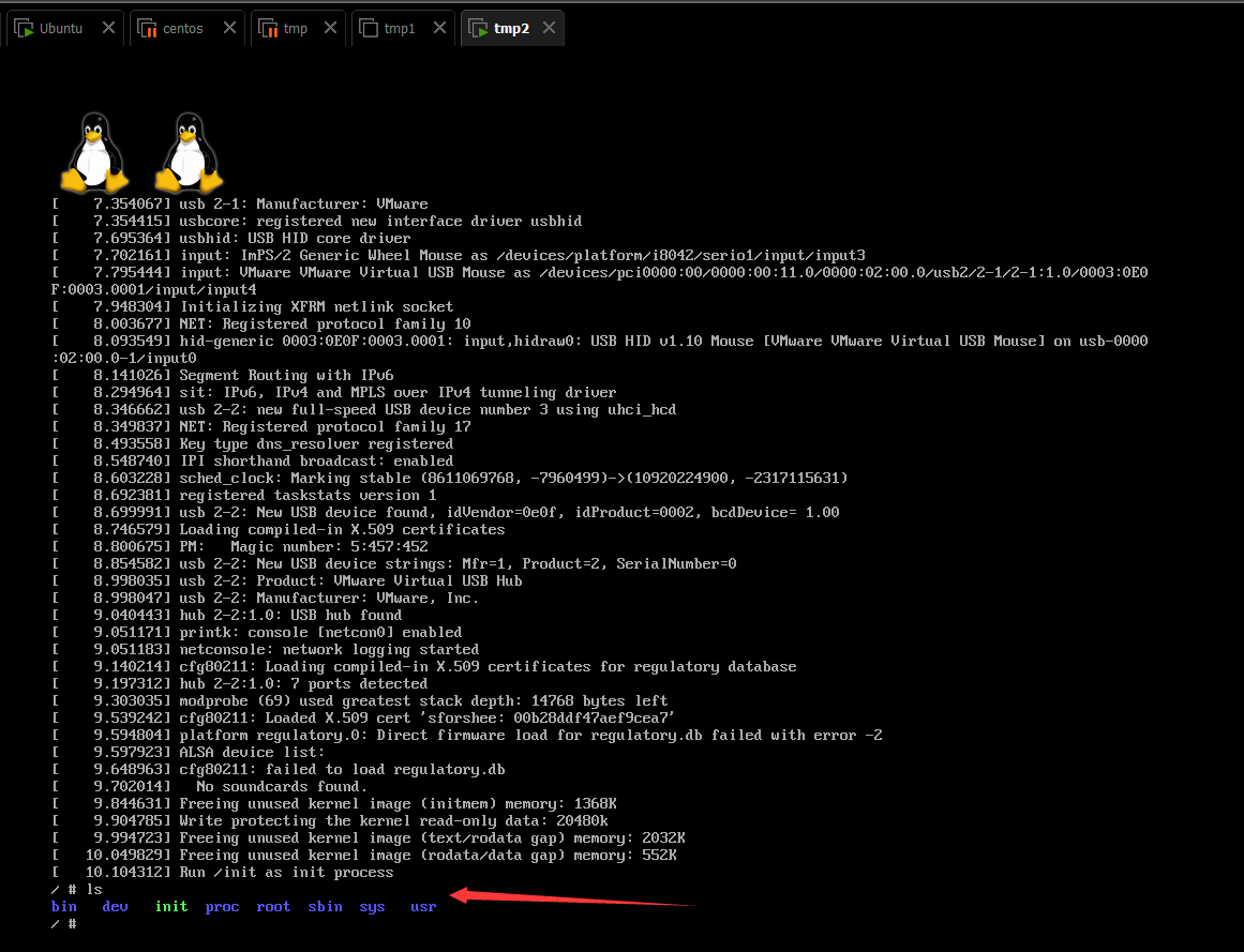 4、然后創建一個rootfs文件夾,并將_install文件夾下面除linuxxrc以外的所有文件及文件夾都拷貝到rootfs文件夾下面,最后創建dev等文件夾,最后在根目錄下面創建init文件即可,文件內容如下圖所示: