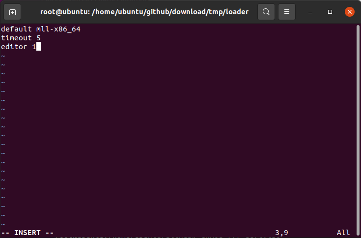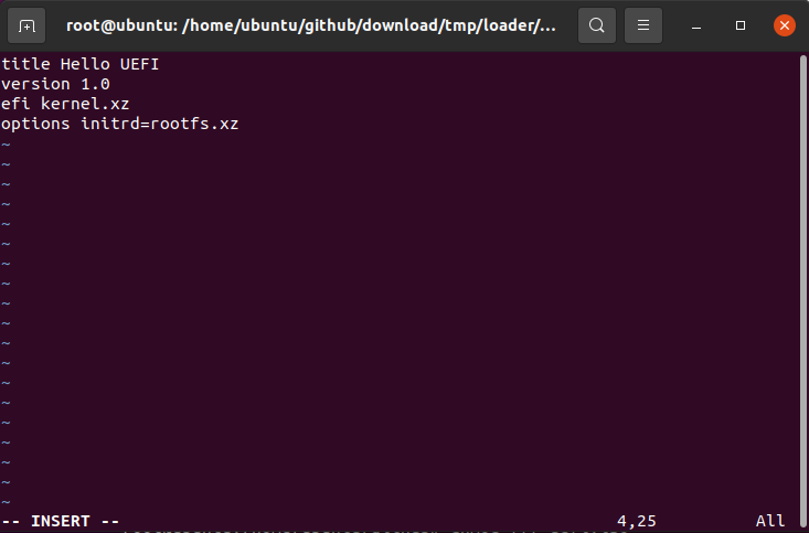 2、接著,在tmp/loader目錄下面,創建文件loader.conf配置文件,第一行表示默認配置是entries目錄下那個文件,第二行設置默認超時時間;然后在entries文件夾下面創建相應的配置文件,這里是mll-x86_64.conf,文件內容和bios的差不多,不在單獨細說,最后再將前面準備好的內核和文件系統拷貝到tmp目錄下面,如下圖所示: