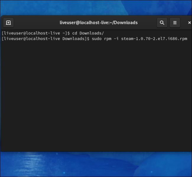 轉到此鏈接并下載Steam RPM 文件。然后打開終端并移動到您下載文件的目錄。