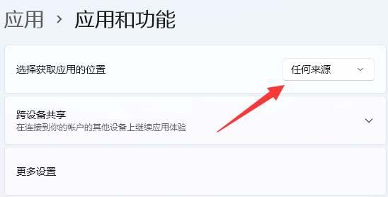 5、最后將選擇獲取應(yīng)用的位置改為“任何來源”即可解決。