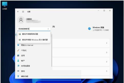 1、首先打開設(shè)置窗口,單擊搜索框,輸入網(wǎng)絡(luò)疑難解答即可。