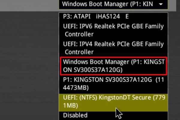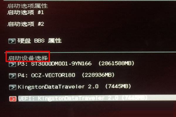 6、進入到啟動選項界面后,在右側下拉列表匯總找到自己固態硬盤的型號并選中,按下F10保存修改并退出。