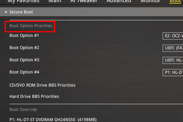 4、在啟動設置界面的下拉框中找到Boot Option Priorities選項并進入。