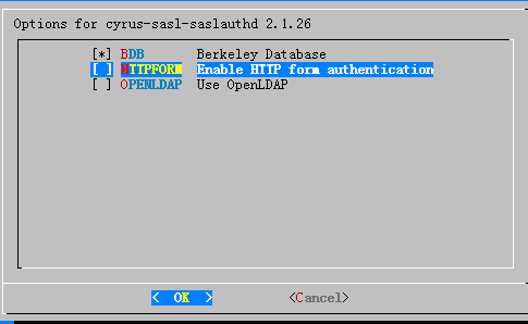 4.安裝cyrus-sasl2-saslauthd程序,選擇配置時候選上BDB