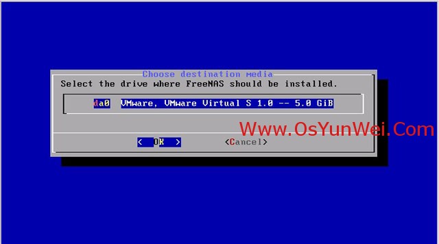 選擇系統(tǒng)安裝硬盤 #這里只有一個(gè)硬盤