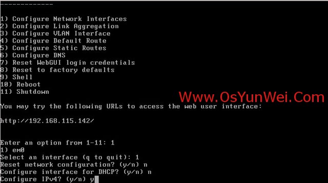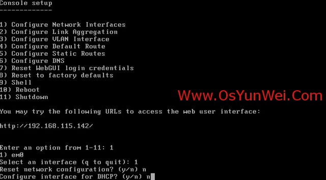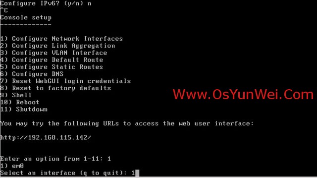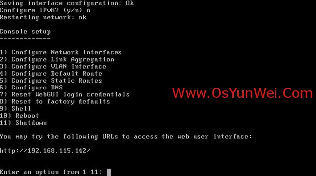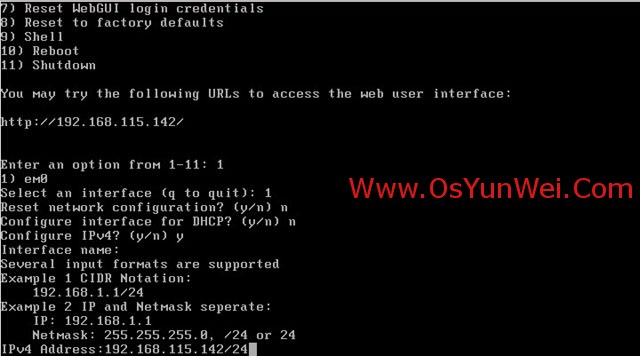 在上面的界面,輸入1回車 #設(shè)置IP地址