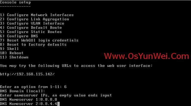 6)配置DNS,會(huì)提示輸入第一個(gè)DNS服務(wù)器的IP地址,要輸入多個(gè)DNS服務(wù)器,按回車鍵輸入下一個(gè)。
