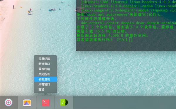 在使用過程中,遇到某個應用失去響應時,可以快速地在任務欄上點擊鼠標右鍵強制退出應用。