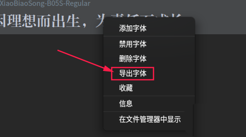 4、右擊需要導出的字體,在彈出的快捷菜單中,選擇【導出字體】。