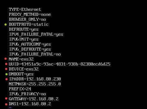 如果你有多個網卡,紅點為各個網卡配置不同的項。如果UUID丟失,可通過uuidgen命令重新生成。筆者由于通過cp復制ens32網卡得到ens34網卡時誤加了同步選項-s,導致ens32的UUID丟失,修改后網卡生效。