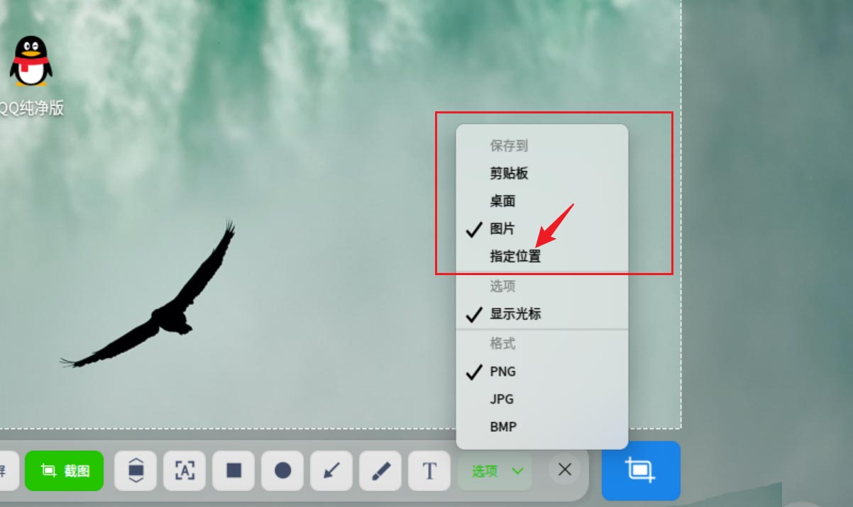 在彈出的菜單中單擊【指定位置】,然后進行截圖。