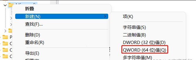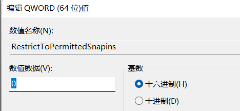 3、創建之后打開MMC后右鍵單擊空白區域新建一個DWORD(64位)值(Q)并重命名為RestrictToPermittedSnapins,如下圖: