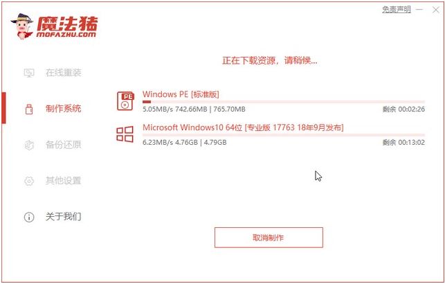 4、下載安裝資源,制作啟動盤,制作完后成之后需要重啟電腦。