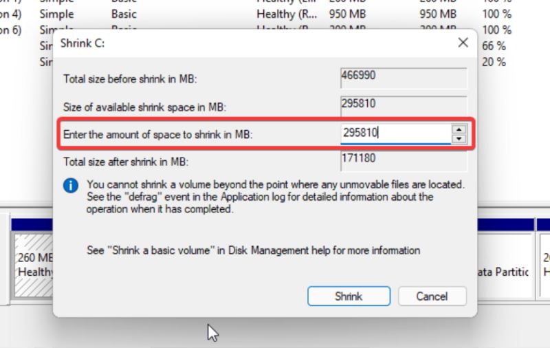 3. 右鍵單擊所需的分區并選擇Shrink Volume。