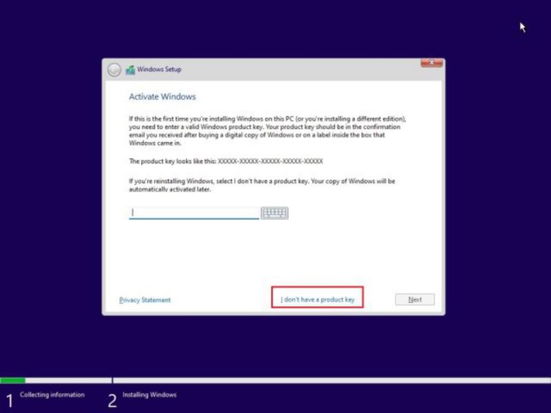 4. 在下一頁上,選擇“我沒有產品密鑰”。
