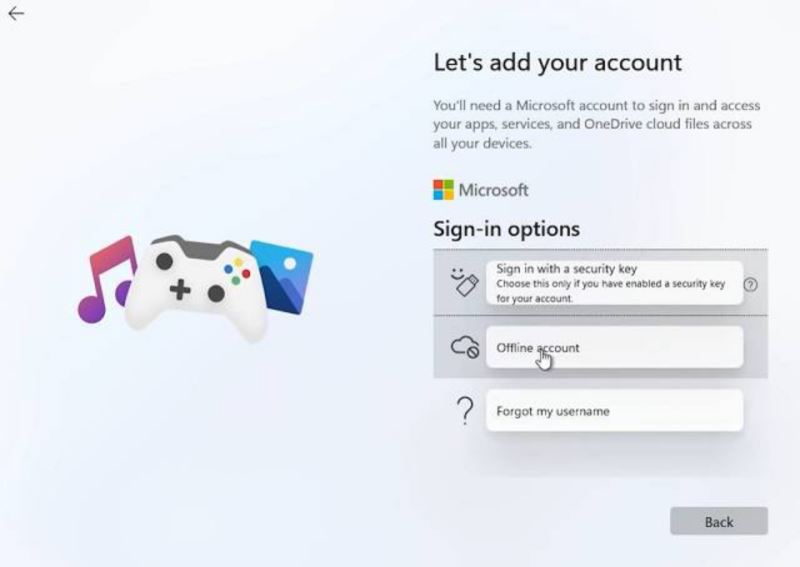 10.在安裝過程中,如果您使用的是Windows 11 Home,則無法創建離線帳戶。您將需要有效的 Internet 連接才能登錄您的Microsoft 帳戶。是的,這是Windows 11荒謬的系統要求之一。但是,如果您使用的是其他 Windows 11 版本,則可以走離線路線:登錄選項 -> 離線帳戶 -> 有限體驗。