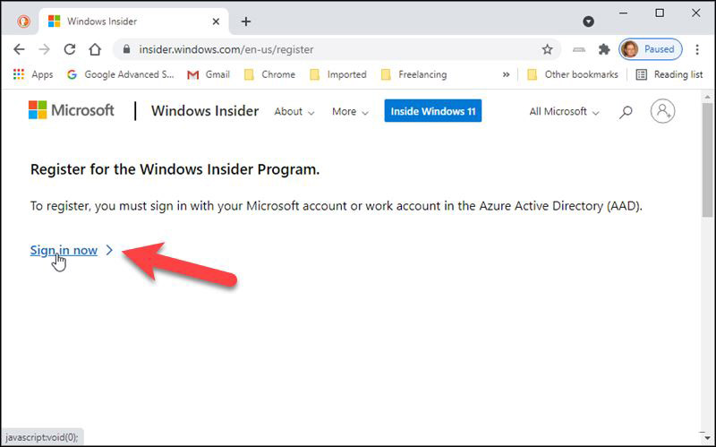 如果您尚未注冊 Windows 預覽體驗計劃,請轉至https://insider.windows.com/en-us/register并單擊立即登錄。