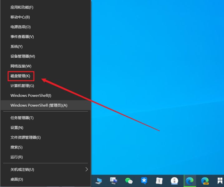 預(yù)覽版系統(tǒng)ISO文件下載好了之后,我們要給磁盤分區(qū)。鼠標(biāo)右鍵點(diǎn)擊【開始】,點(diǎn)擊【磁盤管理】: