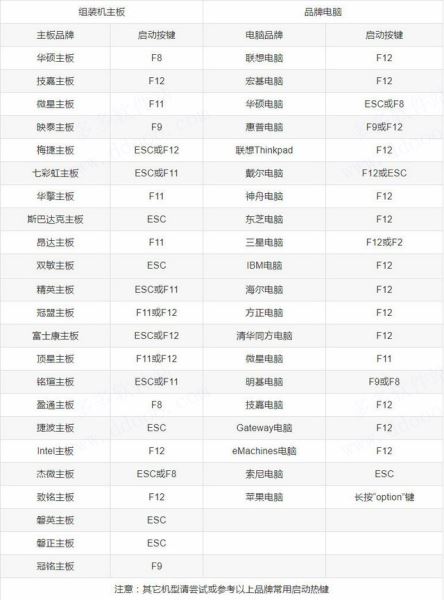 以下為各種品牌的主板和筆記本的快捷啟動(dòng)按鍵: