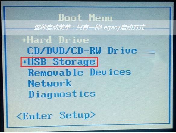當(dāng)您的機(jī)器(老機(jī)器)只支持Legacy時(shí),在這個(gè)主板的啟動(dòng)項(xiàng)中就只會(huì)出現(xiàn)一個(gè)U盤的選項(xiàng):