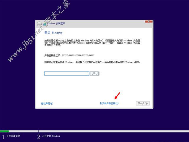 4、在這邊輸入密鑰,沒有密鑰直接點擊【我沒有產品密鑰】;