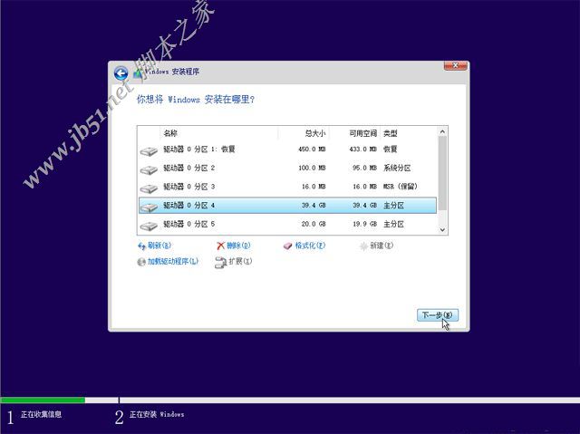 12、完成分區之后,選擇系統安裝位置,一般是第一個主分區,比如圖中的分區4,下一步;
