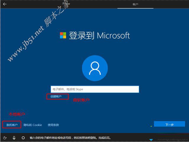 17、到創建帳戶界面,【創建帳戶】是建立微軟Microsoft帳戶,【脫機帳戶】是建立本地帳戶,這邊選擇建立脫機帳戶;