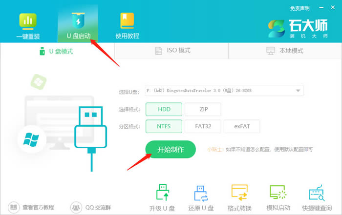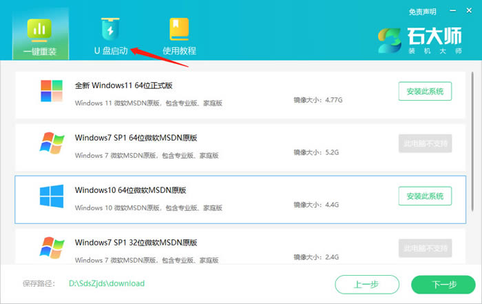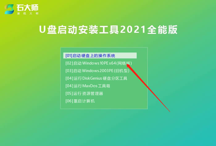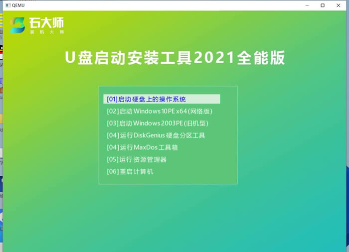首先下載石大師,進入頁面后,選擇U盤啟動。