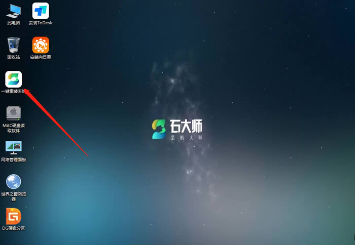 進入PE界面后,點擊桌面的一鍵重裝系統。