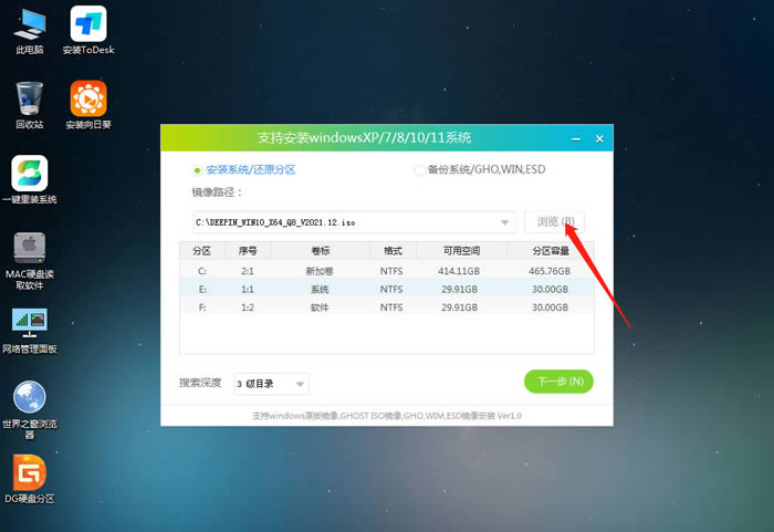 打開工具后,點擊瀏覽選擇U盤中的下載好的系統鏡像ISO。