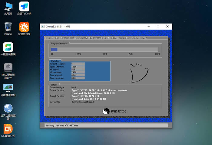 重啟后,系統將自動進入系統安裝界面,到此,裝機就成功了!