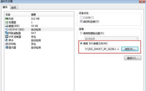 2.這里選擇“使用ISO映像文件”點擊瀏覽選擇xp系統鏡像,然后確定即可。