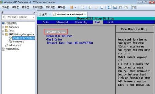 6.重啟虛擬機按f2進入bios,然后關閉虛擬機,我們在左側選擇xp虛擬機-電源-進入固件。
