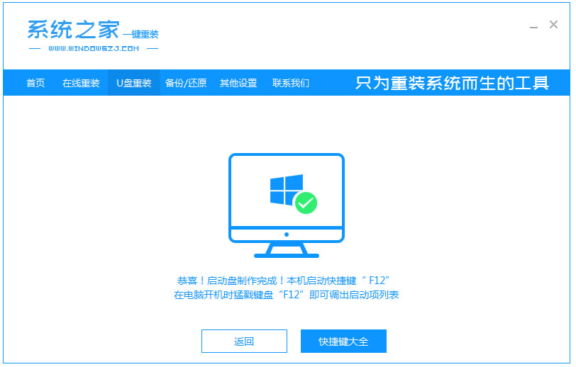 5.此時只需等待系統下載并成功制作U盤工具。然后拔出U盤并將其插入需要重新安裝系統的計算機。