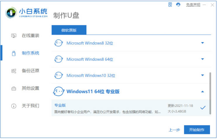 1、首先在macpro蘋果電腦上安裝好小白一鍵重裝系統軟件打開,插入空白u盤,選擇制作系統開始制作u盤啟動盤。