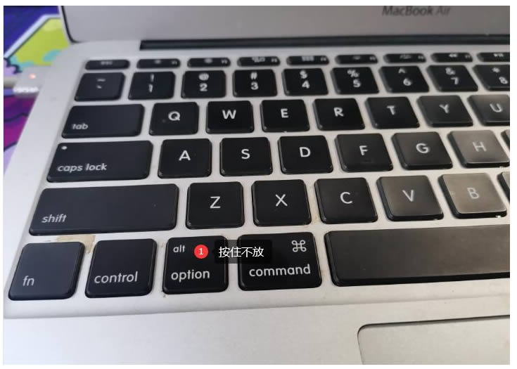 1、插上制作好的啟動 U 盤,蘋果電腦開機的時候按住 Option 鍵不放,當出現蘋果 Logo 時松開。