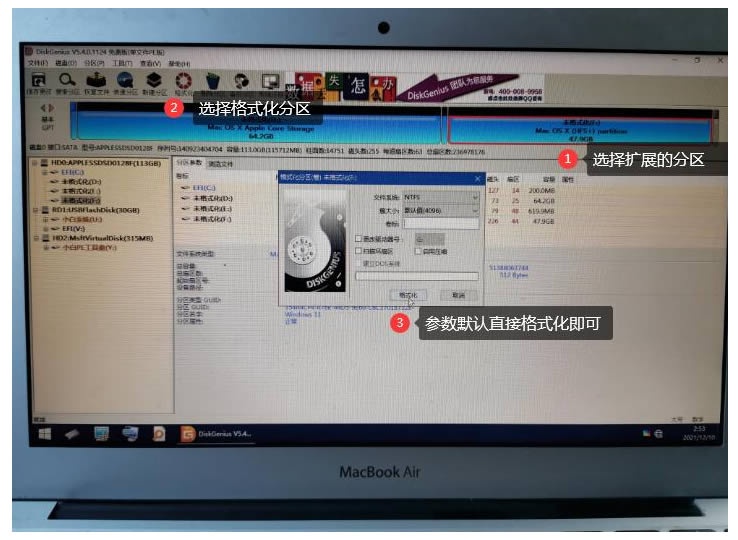 4、進入pe系統后,打開桌面上的分區工具(DiskGenius),把之前擴展的分區格式化處理。