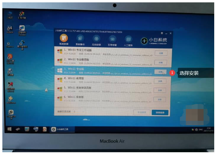 5、分區完成后保存設置退出,打開pe桌面上的小白裝機工具,選擇需要安裝的win11系統點擊安裝。