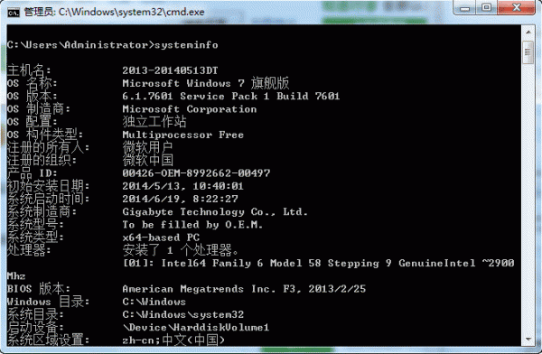 5、我們現在再次運行systeminfo命令發現已經可以正常使用了。