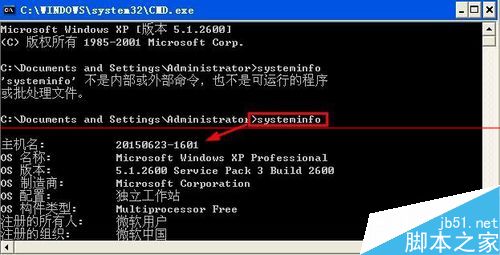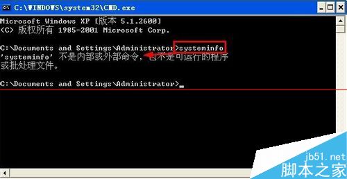2、在命令提示符中我們輸入命令systeminfo然后回車,發現命令無法使用。