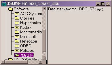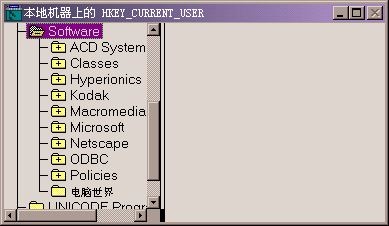 例如,我們需要在HKEY_CURRENT_USER\Software分支下創建一個“電腦世界”的主鍵(或子鍵)。