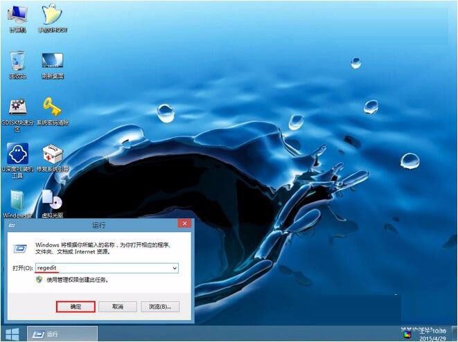 2、打開pe系統(tǒng)后,按下“win+r”組合鍵進(jìn)入運(yùn)行窗口,直接輸入“regedit”指令,按下確定按鈕,如下圖所示: