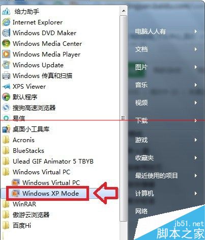 1、點(diǎn)擊Windows7操作系統(tǒng)中的開始菜單→所有程序→Windows Virtual PC→Windows XP Mode