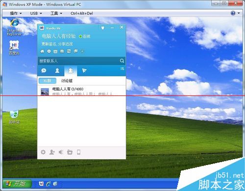 3、Windows7操作系統(tǒng)中不能使用百度客戶端,卸載、重裝HI客戶端不見效。只能在虛擬機(jī)中安裝,臨時(shí)使用,也不錯(cuò)。
