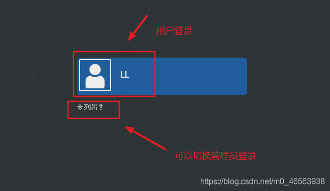 我們可以看見 未列出這三個字,我們點擊這個可以選擇用管理員身份登錄。