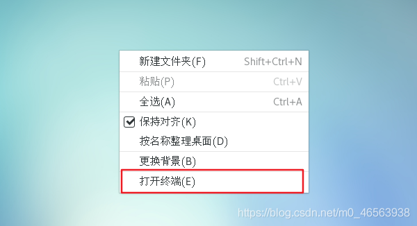 在我們界面里面右鍵,點擊打開終端,就可以在里面敲命令了