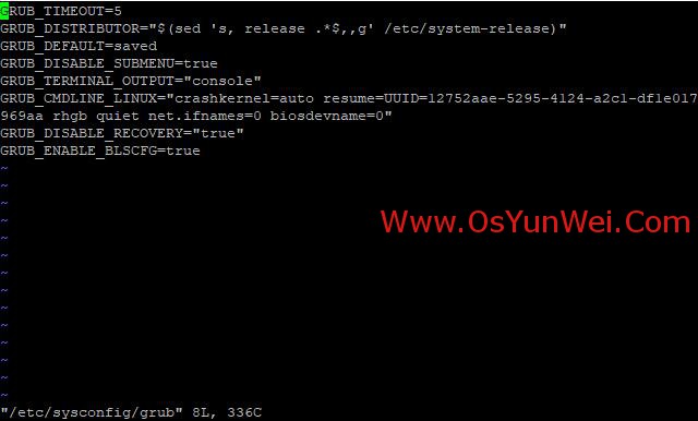 在”GRUB_CMDLINE_LINUX“變量中添加一句”net.ifnames=0 biosdevname=0“