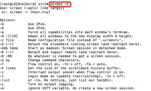 3、安裝后,打印幫助信息,可初步了解screen的功能