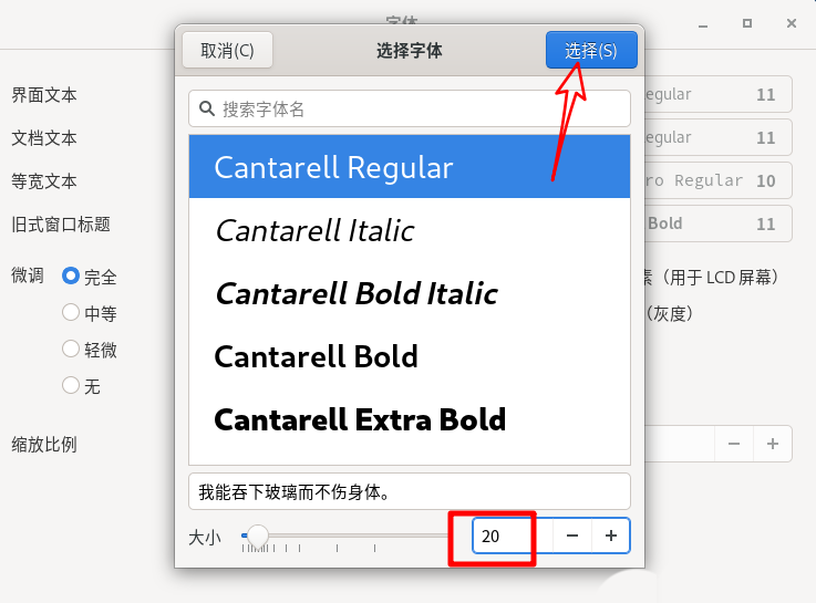 5、用戶(hù)也可以在編輯框直接輸入字體值,之后點(diǎn)【選擇】退出設(shè)置。