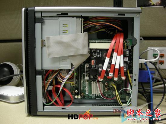 市面上具有64位處理能力的x86處理器很多,但絕大多數都不是為低功耗應用設計的,TDP一般都在35W以上,需要主動散熱。Intel推出的Atom處理器改變了這一狀況,由于采用了先進的45nm工藝,單核的Atom230和雙核的Atom 330 TDP分別只有4W和8W,只需被動散熱即可,功耗和散熱風扇的噪音問題一并解決。但目前市場上的Atom230主板都沒有板載千兆網卡,因此暫不考慮。我把目標鎖定在Intel自家出的D945GCLF2主板,這是一塊標準的Mini-ITX主板,17cm見方,集成了Atom330處理器,945GC北橋,Realtek千兆網卡和一個32位PCI插槽。CPU只用了鋁散熱器,沒有風扇,相比之下功耗大戶是945GC北橋,TDP超過20W,因此用一個4010風扇主動散熱,好在噪音很小。主板上提供了一個IDE接口和兩個SATA3G/s接口,無法滿足接4塊SATA硬盤的要求,因此需要加一塊PCI SATA擴展卡。